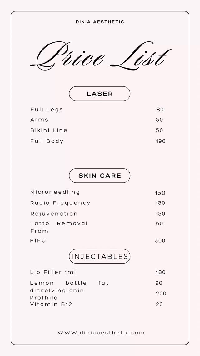 At Dinia Aesthetic, we are committed to delivering top-tier aesthetic treatments and services that meet the highest standards of quality and innovation. Our diverse range of treatments ensures that every client can find the perfect solution for their beauty needs.